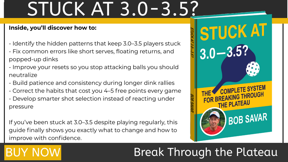 "I thought buying a $200 paddle would fix my game. Spoiler: it didn't. Bob's book did." — Ron K.